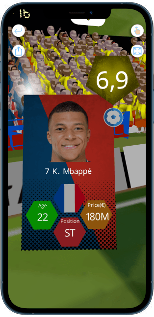 Make your point in every discussion about your club and your favourite players, baked by realtime data in a VR/AR environment directly on your mobile screen.